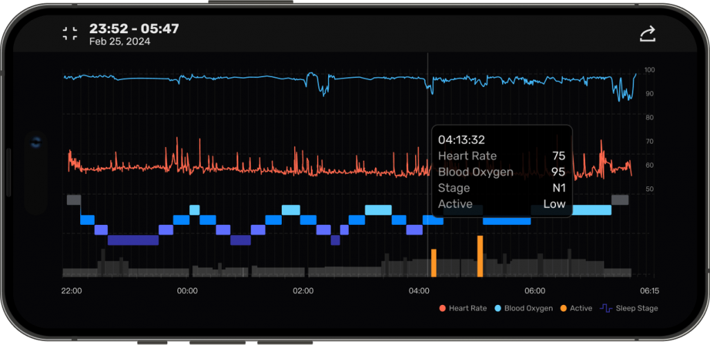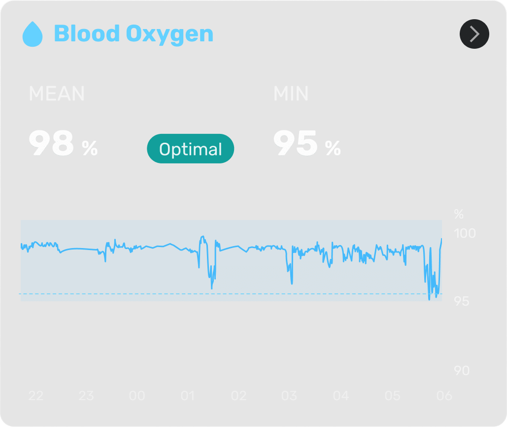 Newly upgraded blood oxygen algorithm. Sampling rate of 50 Hz per second, continuous monitoring throughout the night.