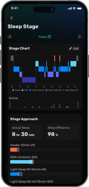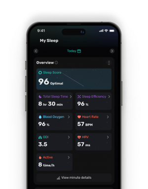 We provides a comprehensive insight of your sleep health by tracking multiple physiological indicators, including: SpO2、 ODI、HR、HRV、Blood glucose (coming soon).