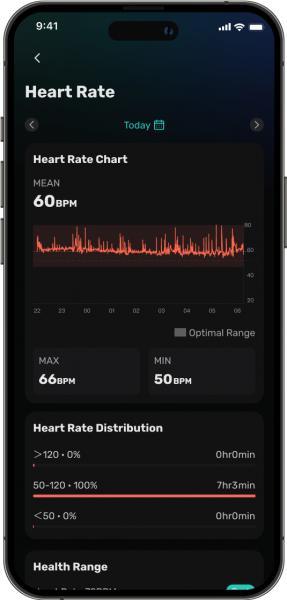 Monitor your heart rate in real time at 50Hz/s and record your entire sleep cycle.